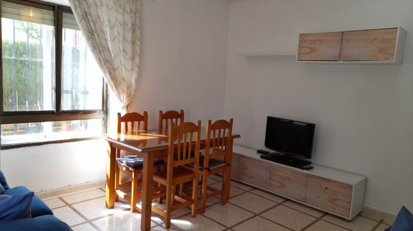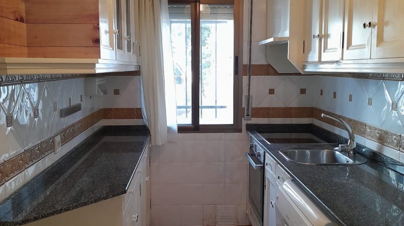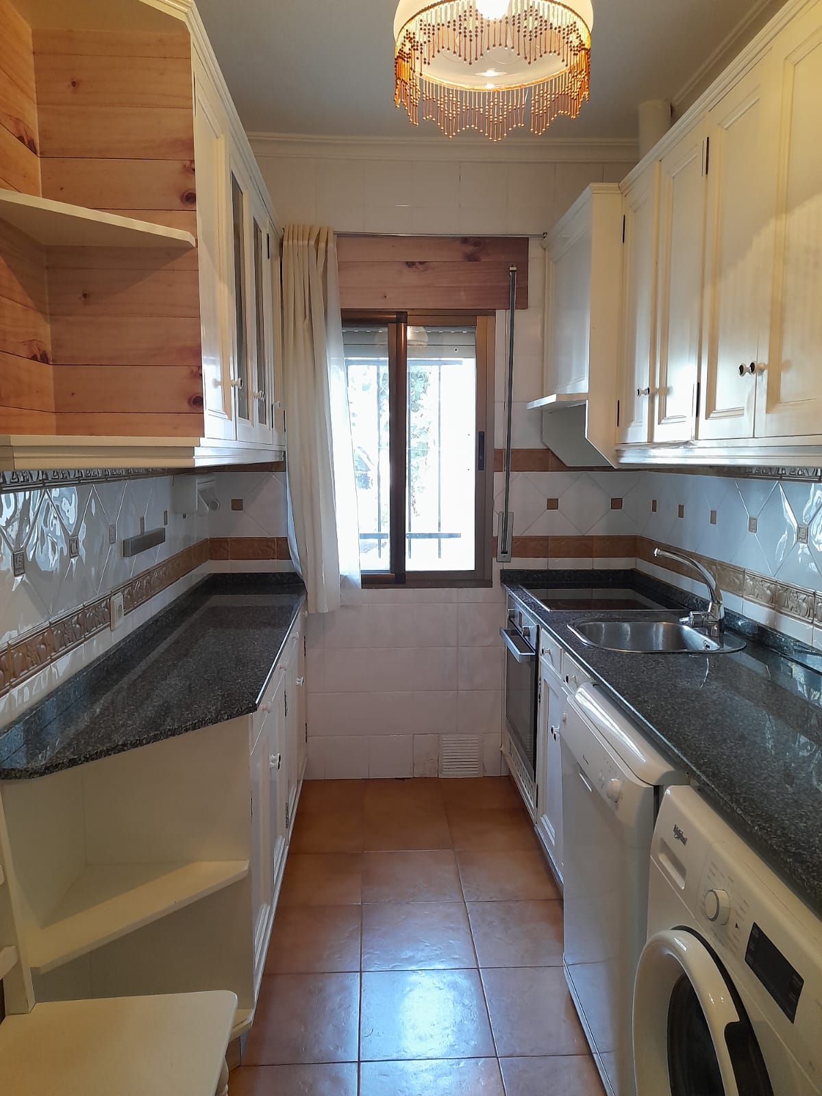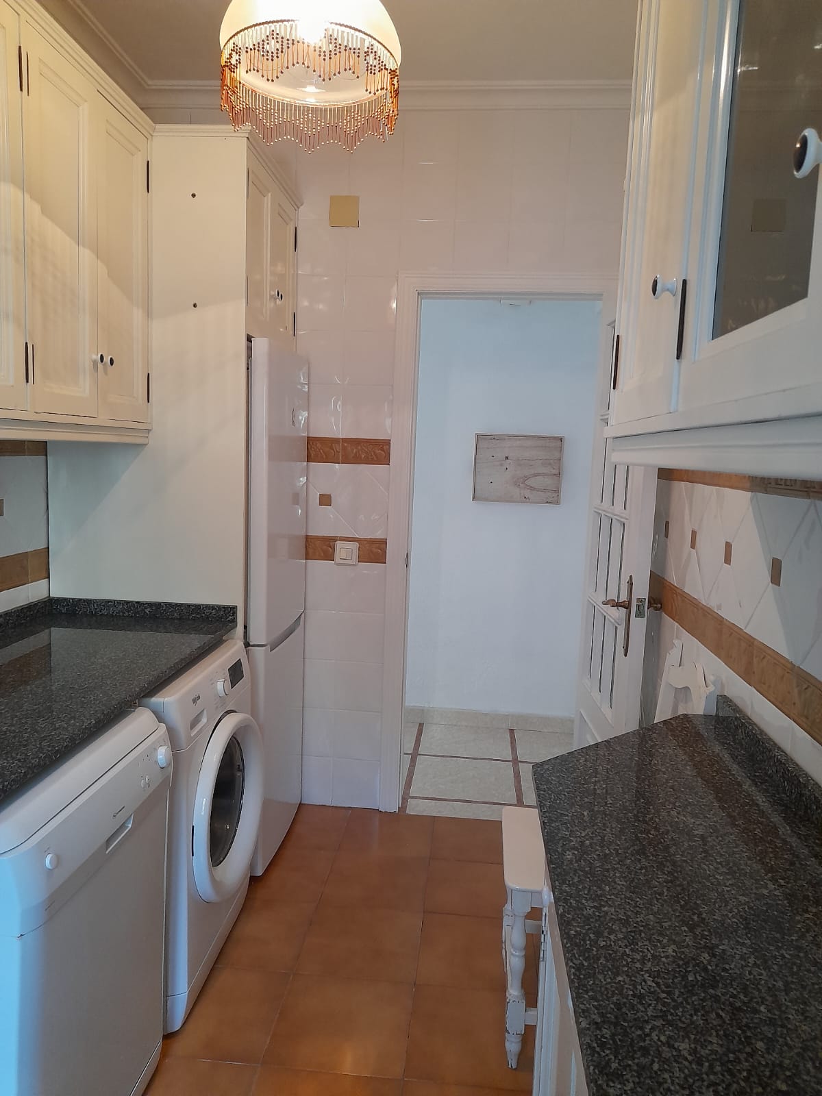 Se encuentra distribuido en dos habitaciones, salón, cocina completamente amueblada y equipada con electrodomésticos (vitrocerámica, campana extractora, horno, microondas, lavavajillas, lavadora, y frigorífico) y baño completo con bañera.